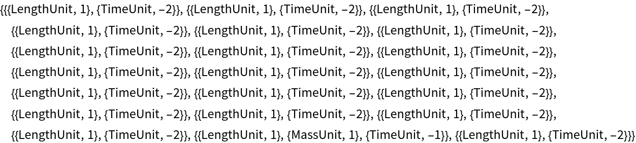Unit dimensions can be determined with UnitDimensions or QuantityVariableDimensions: