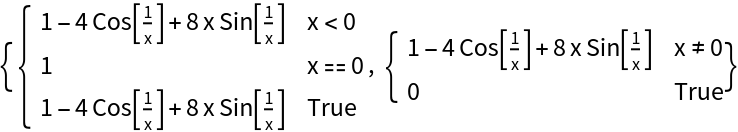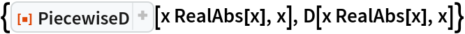 A function with a singularity at x=-1 and x=1; PiecewiseD returns the correct result. Note that if this expression is simplified, the singularity at x=1 will be lost: