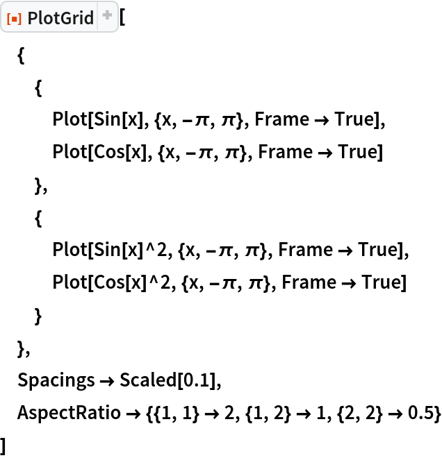 | {gridSpec,{i1,j1}→spec1,…} | target the AspectRatio specified by gridSpec for the entire plot grid |