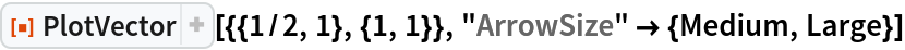 ResourceFunction["PlotVector"][{{1/2, 1}, {1, 1}}, "ArrowSize" -> {Medium, Large}]