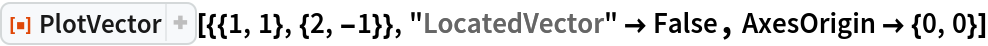 ResourceFunction["PlotVector"][{{1, 1}, {2, -1}}, "LocatedVector" -> True, AxesOrigin -> {0, 0}]