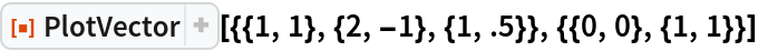 "PlotVector"][{{1, 1}, {2, -1}, {1, .5}}, {{0, 0}, {1, 1}}]