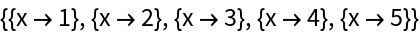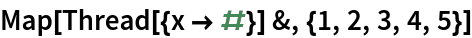 Map[Thread[{x -> #}] &, {1, 2, 3, 4, 5}]