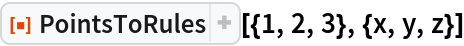 ResourceFunction["PointsToRules"][{1, 2, 3}, {x, y, z}]