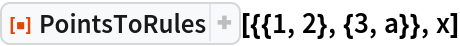 ResourceFunction["PointsToRules"][{{1, 2}, {3, a}}, x]