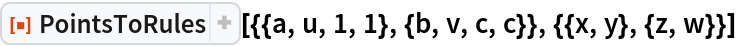 "PointsToRules"][{{a, u, 1, 1}, {b, v, c, c}}, {{x, y}, {z, w}}]