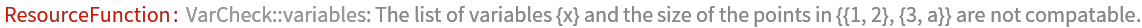 The number of variables must be compatible with the size of each point: