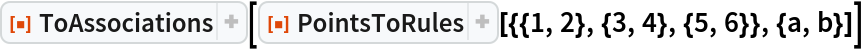 ResourceFunction["PointsToRules"][{{1, 2}, {3, 4}, {5, 6}}, {a, b}]]