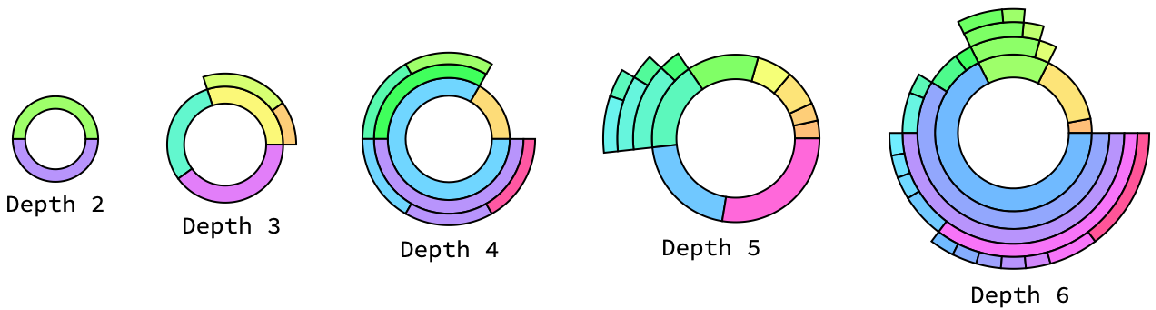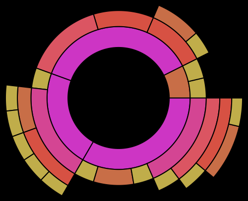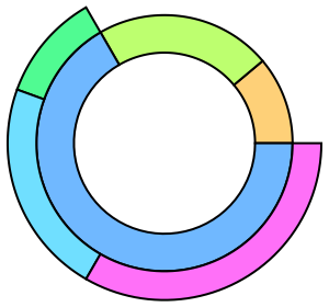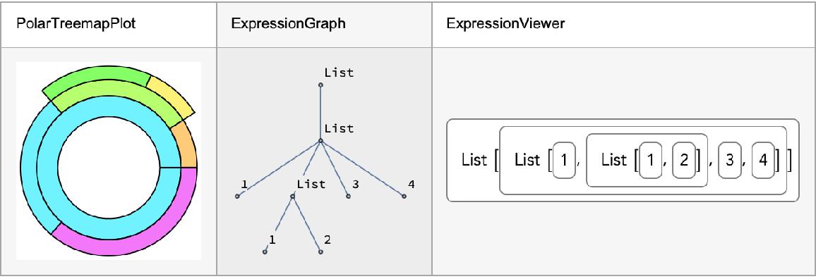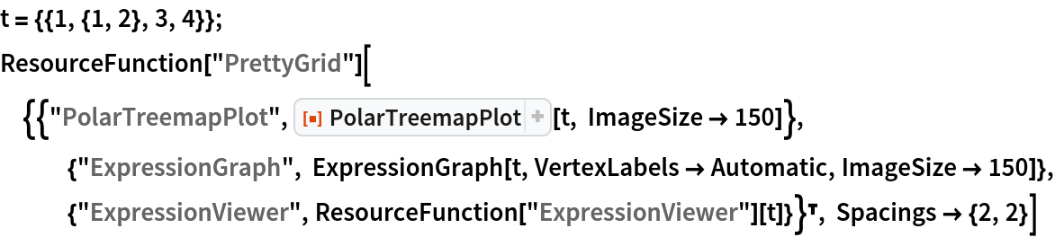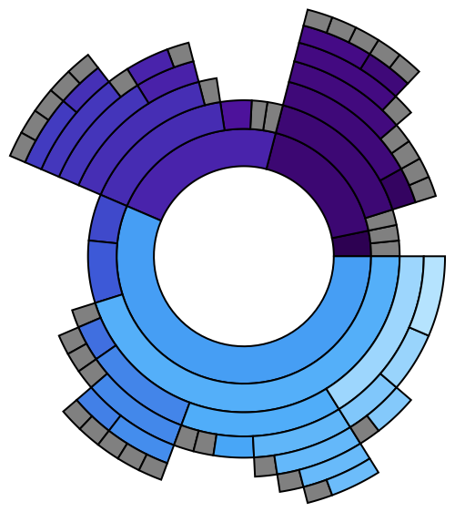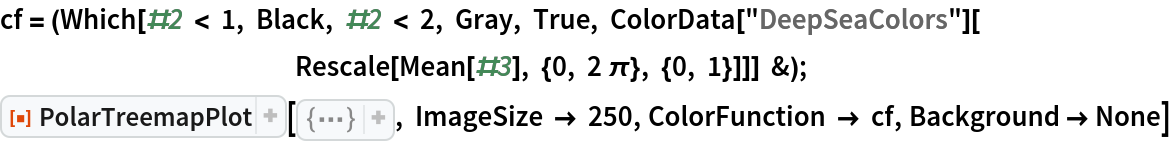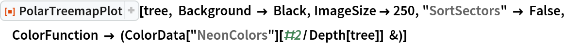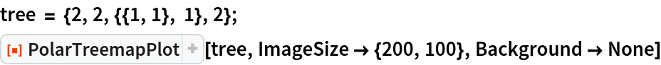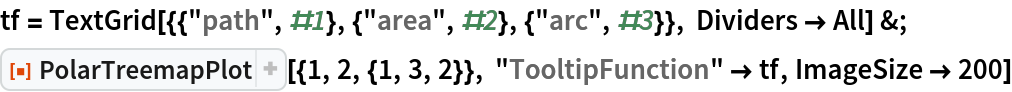 ResourceFunction["PolarTreemapPlot"][list] generates a polar treemap plot of a tree-like structure list. |