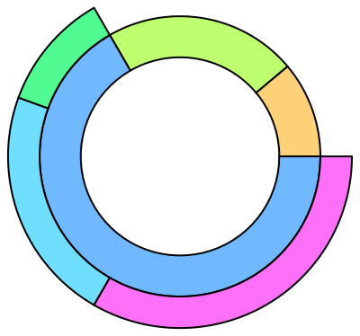 | ColorFunction | Automatic | applies a given color function f[path,area,{rad1,rad2}] to the arc sectors |