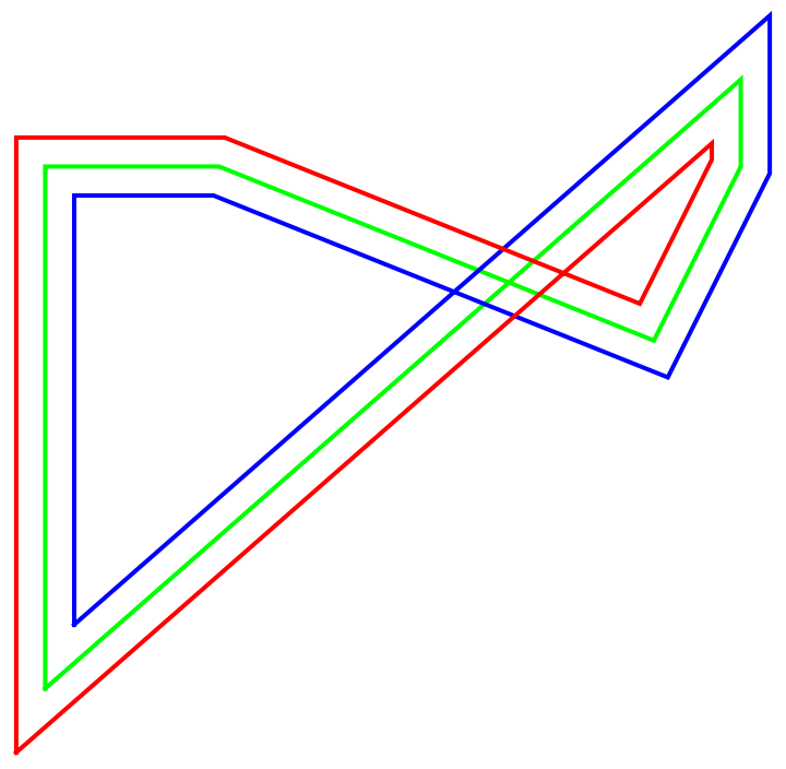 ResourceFunction["PolygonOffsets"][polyline,distance] creates two polylines at distance from polyline. |