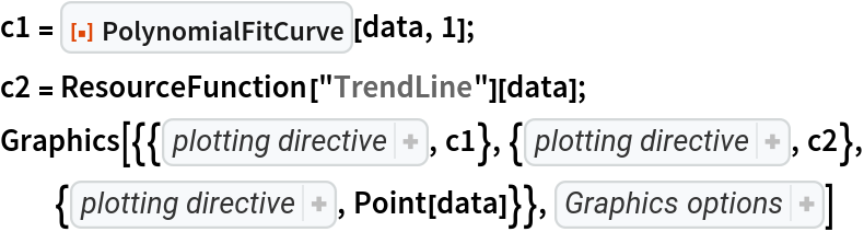 For degree 1, PolynomialFitCurve gives a result equivalent to the result of the resource function TrendLine: