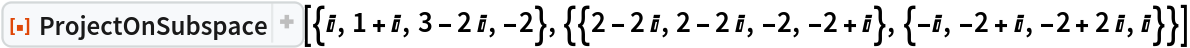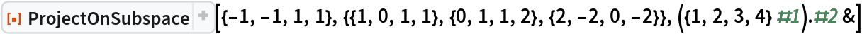 ResourceFunction["ProjectOnSubspace"][u,{v1,v2,…},ip] finds the projection onto the subspace using the inner product ip. |