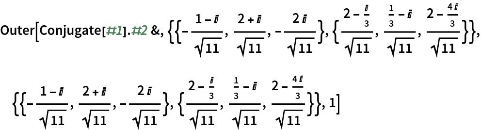 Vectors with symbolic entries are assumed to represent complex numbers: