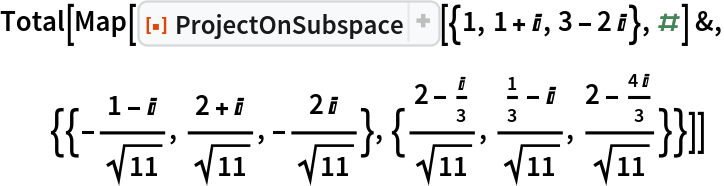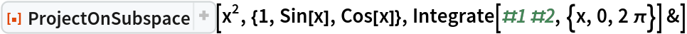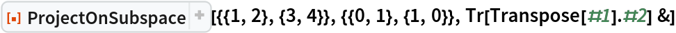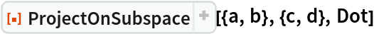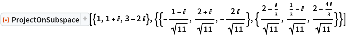 ResourceFunction["ProjectOnSubspace"][u,v,ip] finds the projection using the inner product ip. | |