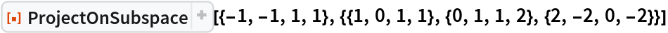 ResourceFunction["ProjectOnSubspace"][u,{v1,v2,…}] finds the projection of u onto the subspace spanned by {v1,v2,…}. | |