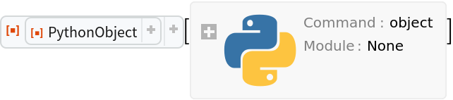 ResourceFunction["PythonObject"][<|…|>] represents a Python object defined in an ExternalSessionObject. | |