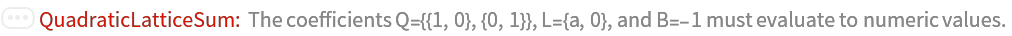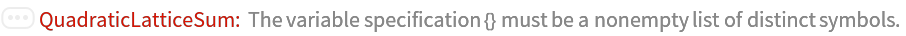 ResourceFunction["QuadraticLatticeSum"][expr,{x1,x2,…,xn},Q,L,B] sums expr over integer lattice points inside the quadratic region |