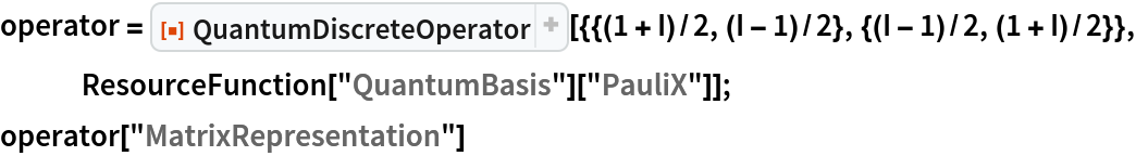 Create a discrete quantum operator from a matrix representation in a specified basis (Pauli-X) and return its matrix representation: