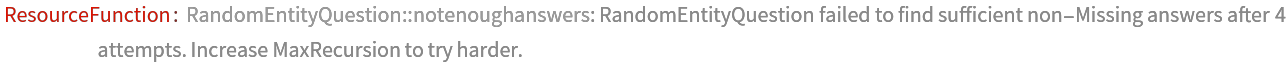 If there are insufficient nonduplicate, nonmissing answers found, then RandomEntityQuestion will return $Failed: