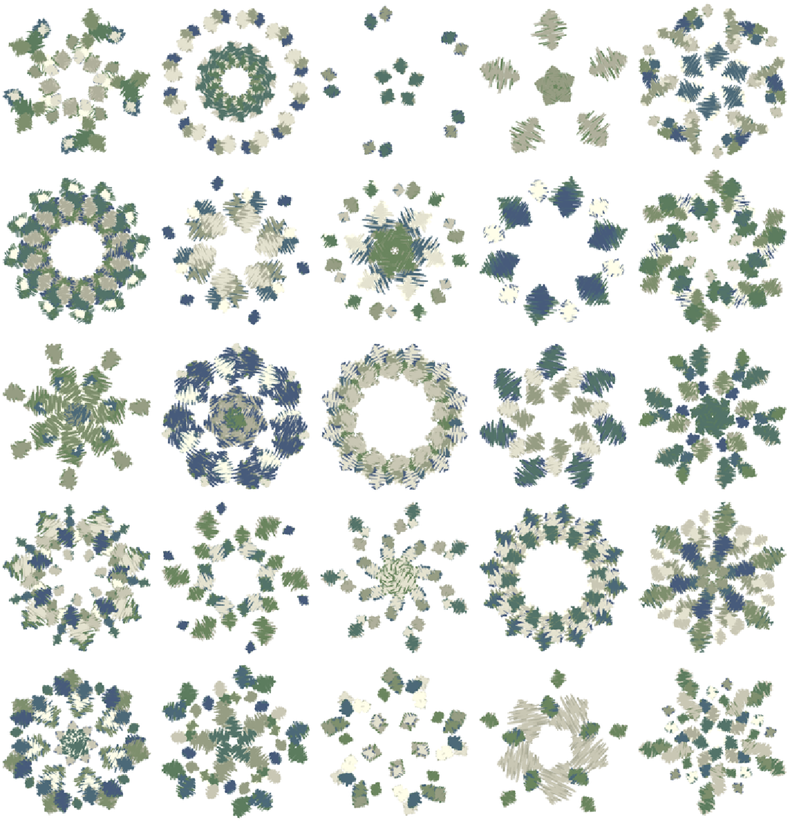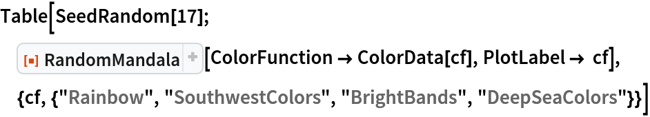 Here are single-mandala mode mandalas made with the custom seed segment function defined above: