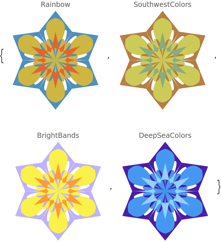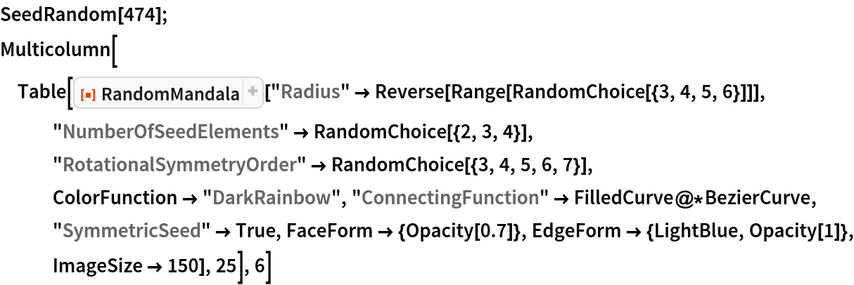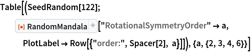 The "RotationalSymmetryOrder" option specifies how many copies of the seed segment comprise the mandala:
