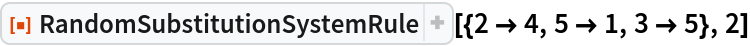 ResourceFunction["RandomSubstitutionSystemRule"][sig,k] generates a random string substitution rule with signature sig and up to k distinct elements. |