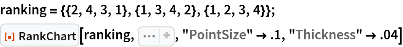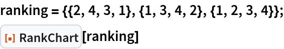ResourceFunction["RankChart"][{list1,list2.…}] makes a chart of the transition of the ranking lists list1,list2.… . |