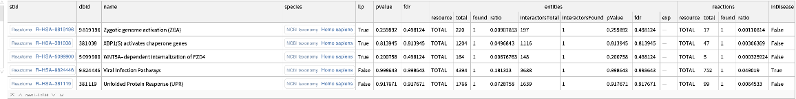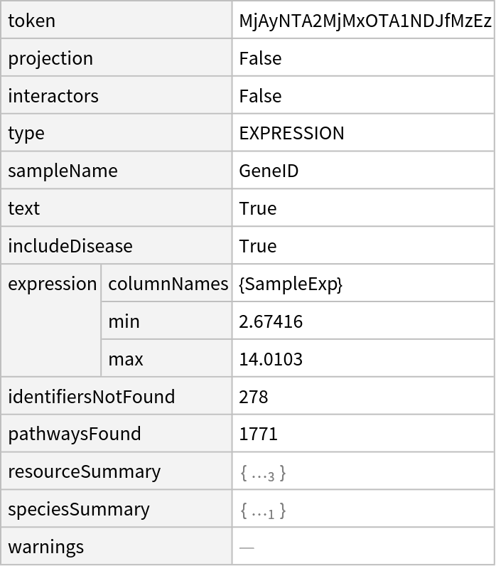 ResourceFunction["ReactomeEnrichmentAnalysis"][token,"Result"]