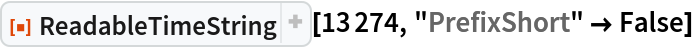 ResourceFunction["ReadableTimeString"][seconds] converts seconds into a human-readable time string. |