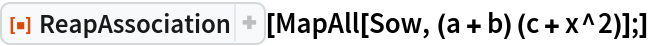 ResourceFunction["ReapAssociation"][MapAll[Sow, (a + b) (c + x^2)];]