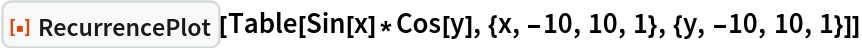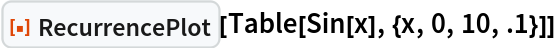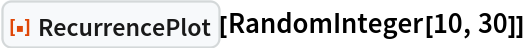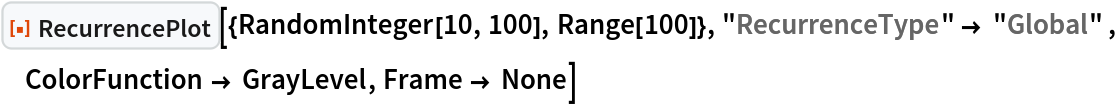 ResourceFunction["RecurrencePlot"][ts] shows the recurrence plot of the time series ts. | |