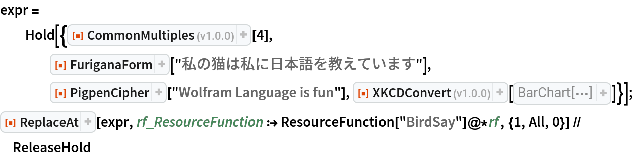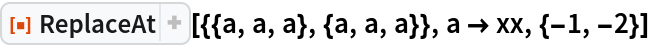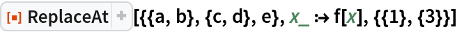 ResourceFunction["ReplaceAt"][expr,rules,{i,j,…}] replaces the part of expr at position {i,j,…}. | |
