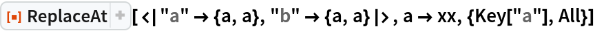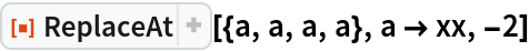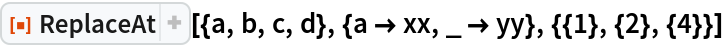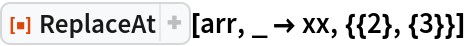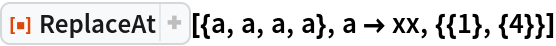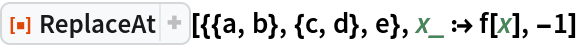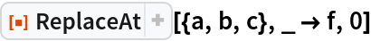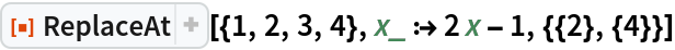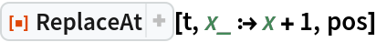 ResourceFunction["ReplaceAt"][rules,pos] represents an operator form of ResourceFunction["ReplaceAt"] that can be applied to an expression. |