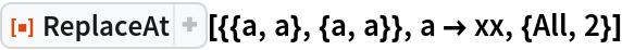 ResourceFunction["ReplaceAt"][expr,rules,{{i1,j1,…},{i2,j2,…},…}] replaces parts at several positions. | |