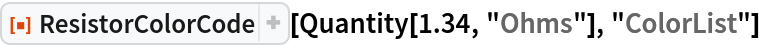 ResourceFunction["ResistorColorCode"][resistance,"ColorList"] generates a list of resistor color codes used to represent the specified resistance. | |