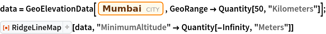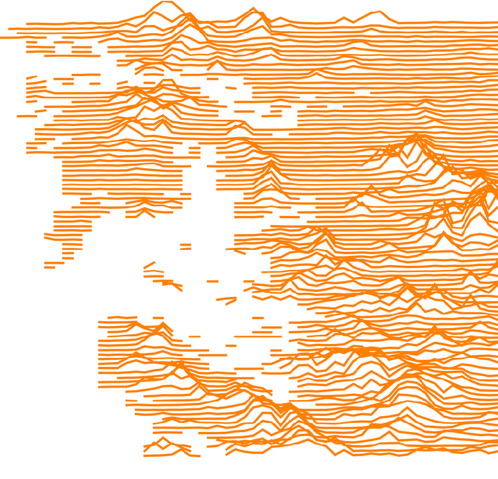 ResourceFunction["RidgeLineMap"][data] generates a ridge line map for the given data. |