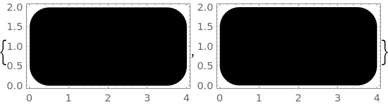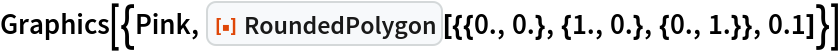 ResourceFunction["RoundedPolygon"][{p1,…,pn},r] represents a filled rounded polygon with points pi and rounding radius r. | |
