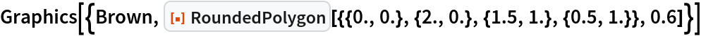 ResourceFunction["RoundedPolygon"][{p1,…,pn},{r1,…,rn}] represents a filled rounded polygon with points pi and corresponding rounding radii ri. |