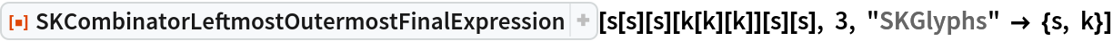 | "SKGlyphs" | {CombinatorS,CombinatorK} | symbols used to specify S,K combinator transformation rules |