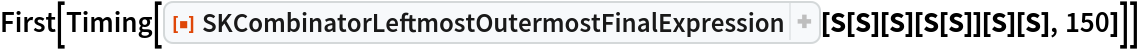 Compare the time efficiency of SKCombinatorLeftmostOutermostFinalExpression to that of taking the last state from the explicit evolution generated by the resource function CombinatorEvolve: