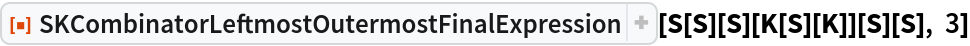ResourceFunction["SKCombinatorLeftmostOutermostFinalExpression"][cmb, t, max] returns the final state of the evolution of cmb if the leaf count of the final state is less than max. |