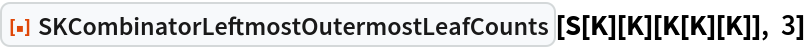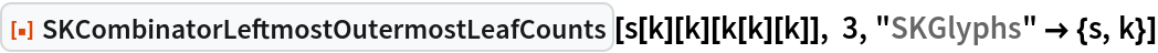 Compute leaf counts associated with states of a leftmost-outermost SK combinator evolution:
