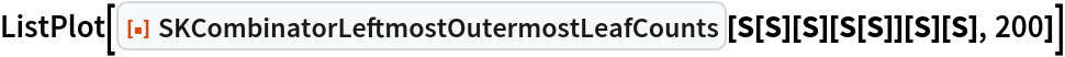 ResourceFunction["SKCombinatorLeftmostOutermostLeafCounts"][cmb, t] computes leaf counts of successive expressions during leftmost-outermost evolution of cmb over t steps. |
