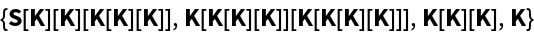 | "SKGlyphs" | {CombinatorS,CombinatorK} | symbols used to specify S, K combinator transformation rules |
