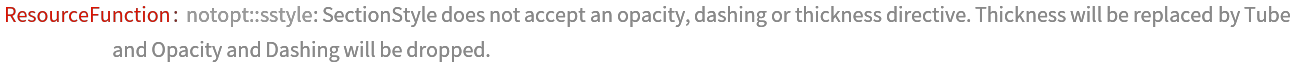 "SectionStyle" does not allow a opacity, dashing, or thickness directives. Opacity and dashing are dropped, and thickness is replaced by Tube: