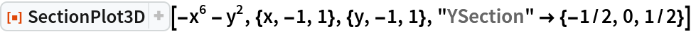 ResourceFunction["SectionPlot3D"][-x^6 - y^2, {x, -1, 1}, {y, -1, 1}, "YSection" -> {-1/2, 0, 1/2}]