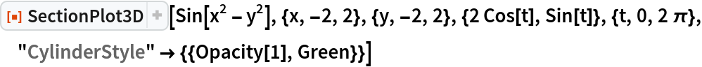 Sin[x^2 - y^2], {x, -2, 2}, {y, -2, 2}, {2 Cos[t], Sin[t]}, {t, 0, 2 \[Pi]}, "CylinderStyle" -> Opacity[1]], ResourceFunction["SectionPlot3D"][