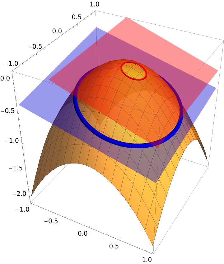 ResourceFunction["SectionPlot3D"][-x^2 - y^2, {x, -1, 1}, {y, -1, 1}, "ZSection" -> {-(1/2), -1}, Mesh -> False, BoxRatios -> Automatic]