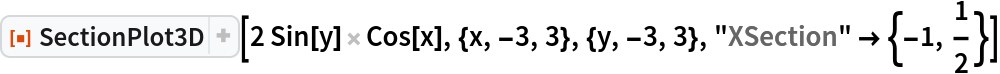 2 Sin[y] Cos[x], {x, -3, 3}, {y, -3, 3}, "XSection" -> {-1, 1/2}]